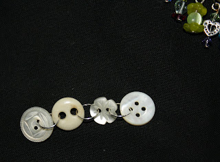 Linked buttons..... I stopped, because the jump rings I have are not strong enough and I think they could pull apart, easily. Once the correct gauge rings are acquired, I'd like to connect the buttons, and maybe add charms or even the shanked buttons.